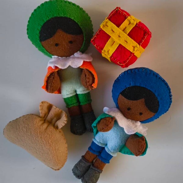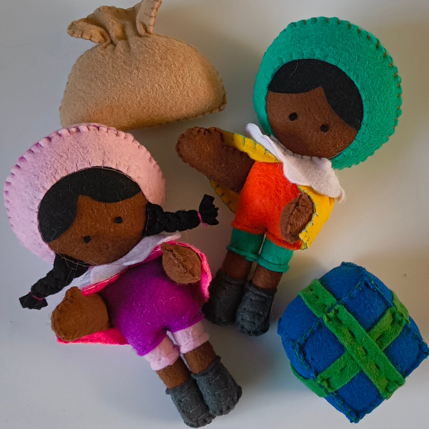 Aan dit Pietentouw komen twee Pietjes, een cadeautje en een cadeauzakje. Welke kleurtjes jouw figuren hebben is een verrassing! (Op de huidskleur na dan, natuurlijk).